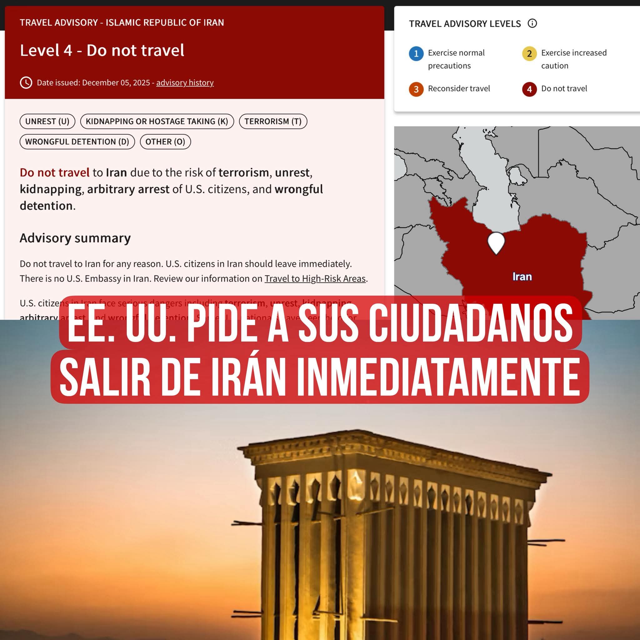 Urgente!! Estados Unidos emite alerta urgente para que sus ciudadanos abandonen Irán.!!
